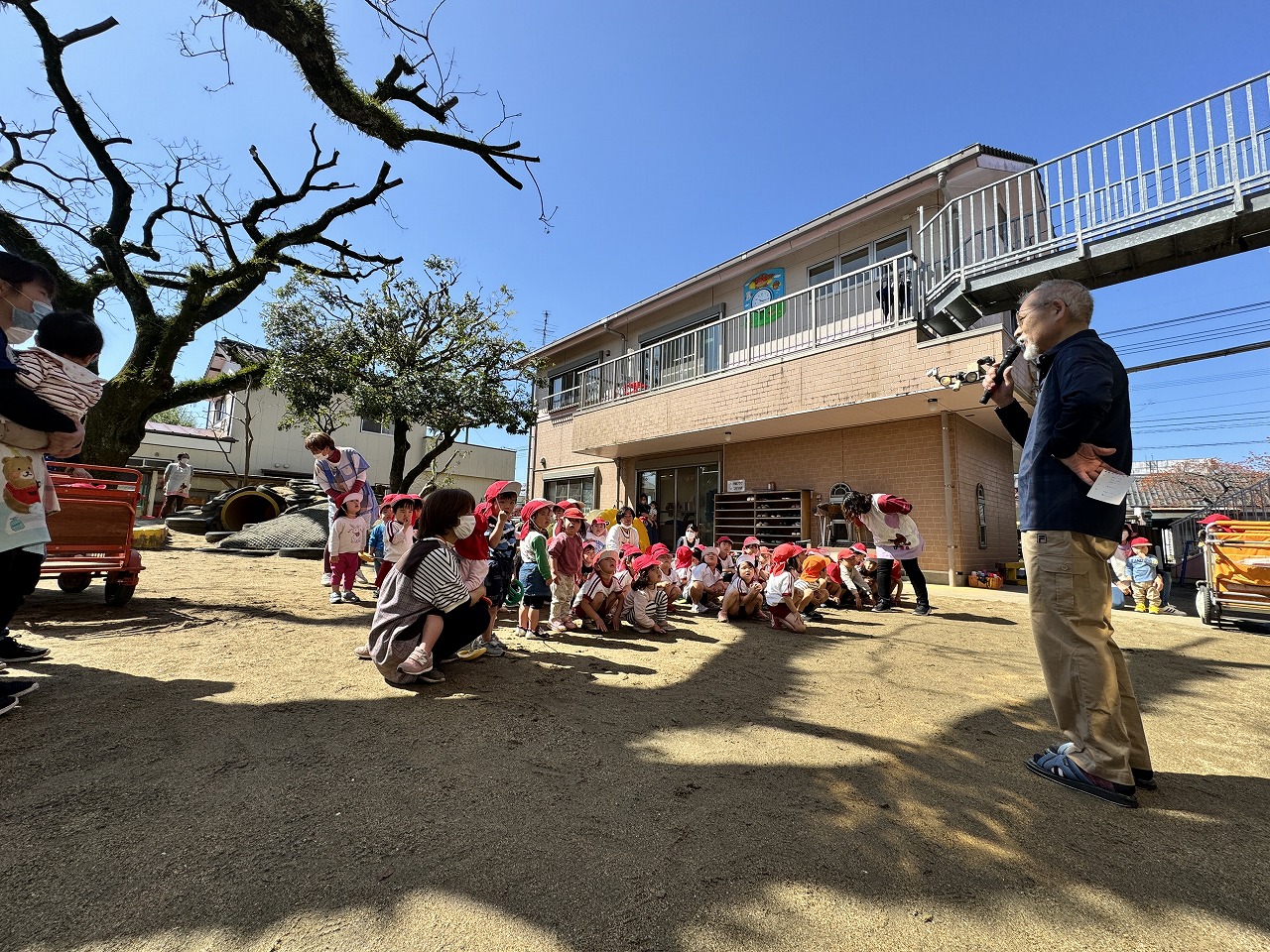 今日は初日ということで、全ての子どもたちが園庭に集合し「令和6年度も頑張ろう集会」を開催しました。
