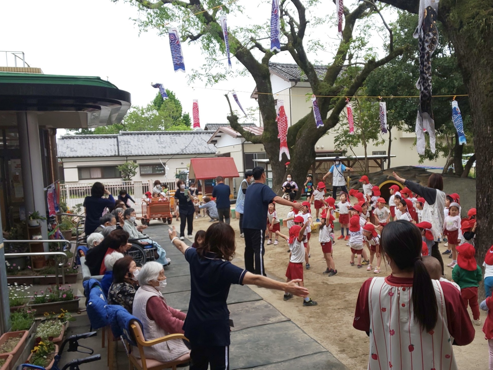 デイサービス利用者の高齢者と園児が時空を共にする「体操大作戦」を実施しました。