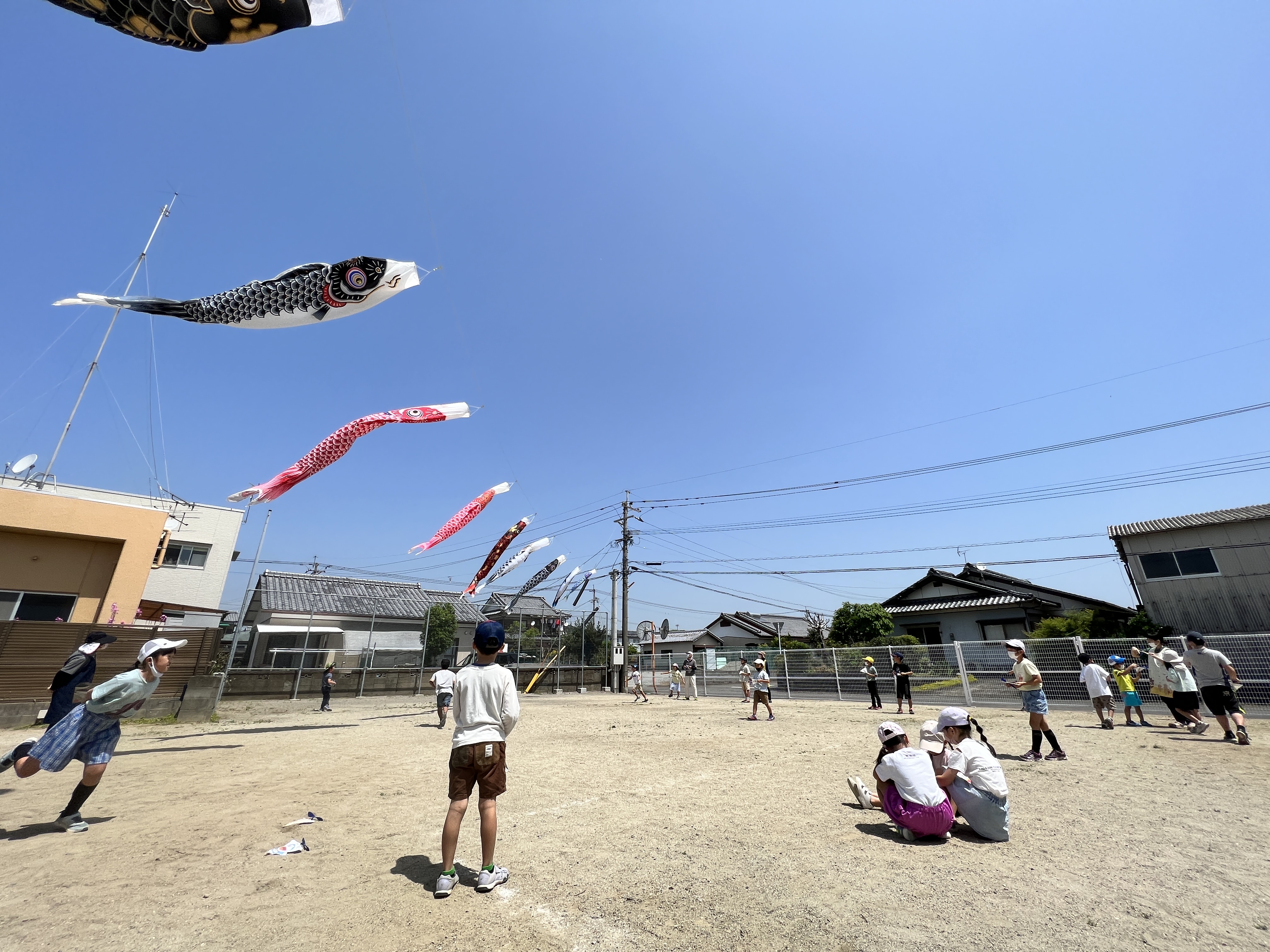 完成した「スカイスクリュー」は、元気に泳ぐ鯉のぼりとともに空高く飛ばしました。