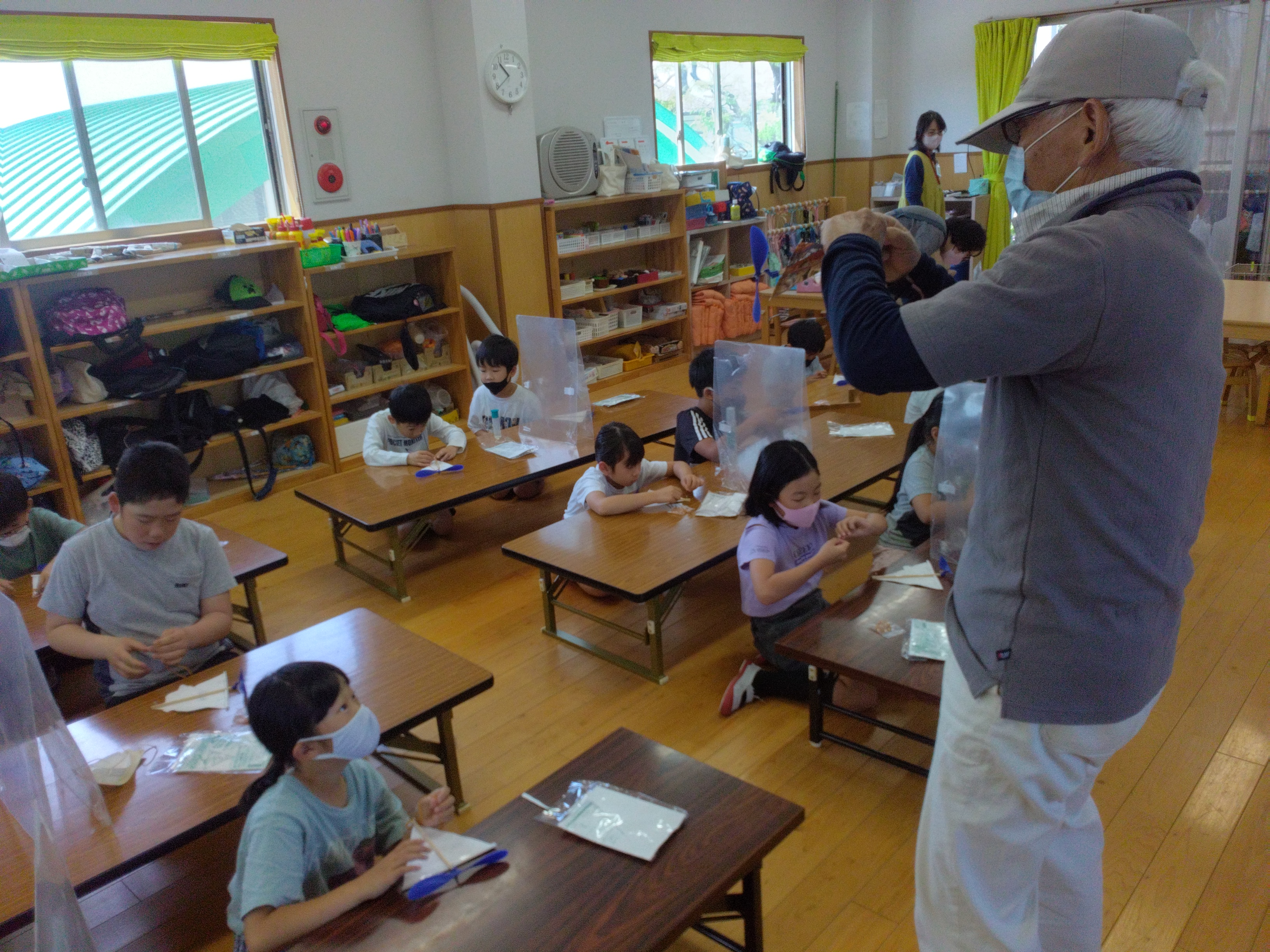 学童クラブでは、ボランティアの内田先生を迎えて、月1回工作教室を実施しています。