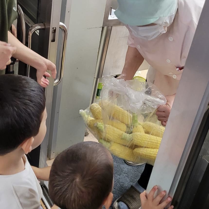 茹でてもらったとうもろこしは、おやつとしていただきました。