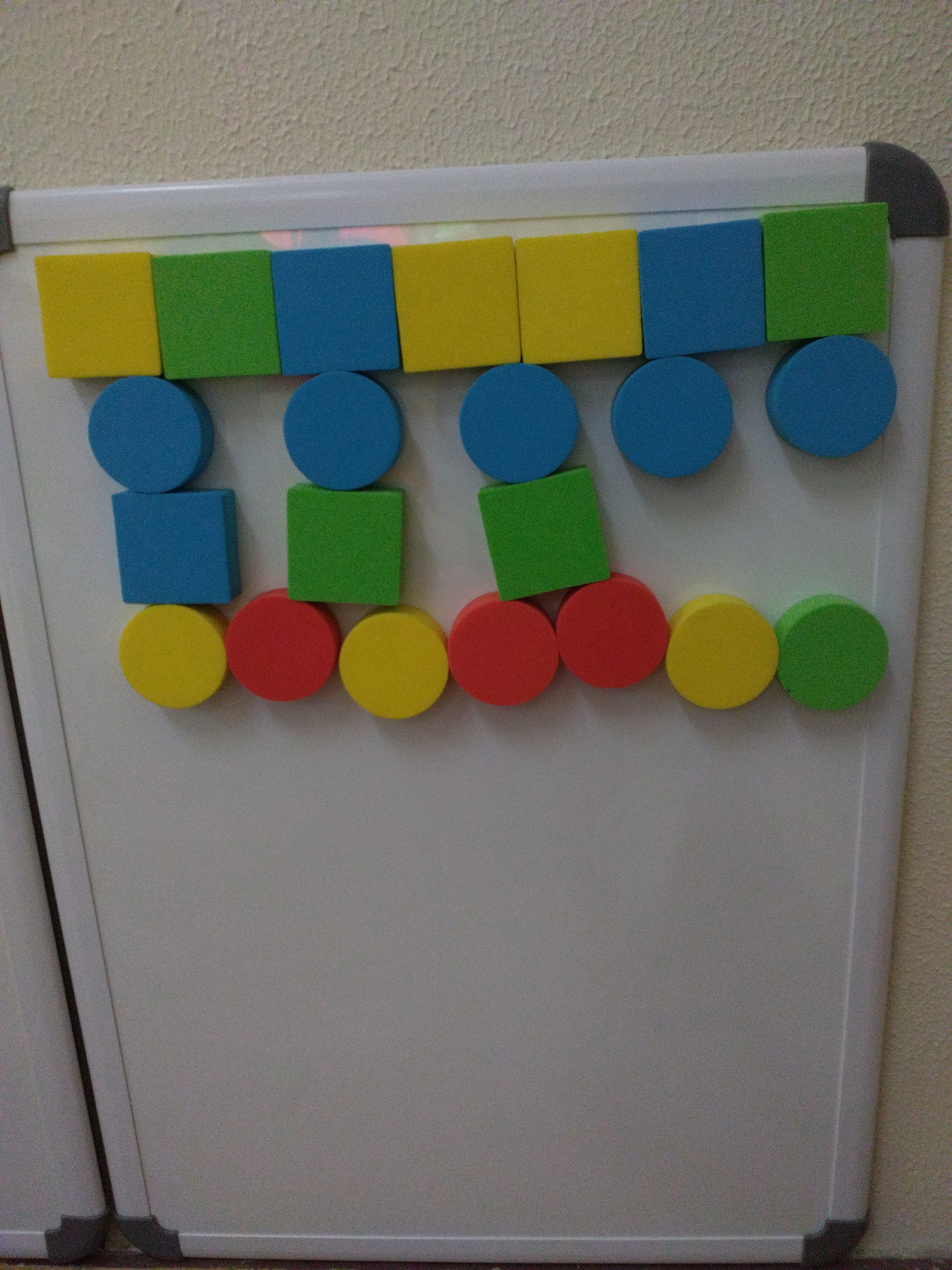 友だちが三角形を集めて、五角形を作りました。それを保育者が「すごい!五角形作れるの!?」と驚いていると、僕もできるよ~と友だちが作った五角形を見ながら真似して作っていました。2歳児ですが、形に興味が出てきて「これは四角」「これは三角」と言いながら形を集めたり、電車やお家、キャンディーなど様々な形を自分で考え、作って楽しんでいます。
