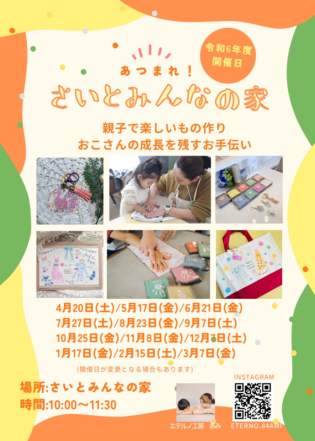 4月に配信させていただいた、「あつまれ!さいとみんなの家~手形足型アート~」の年間予定表の日程が、多少変更になっております。
