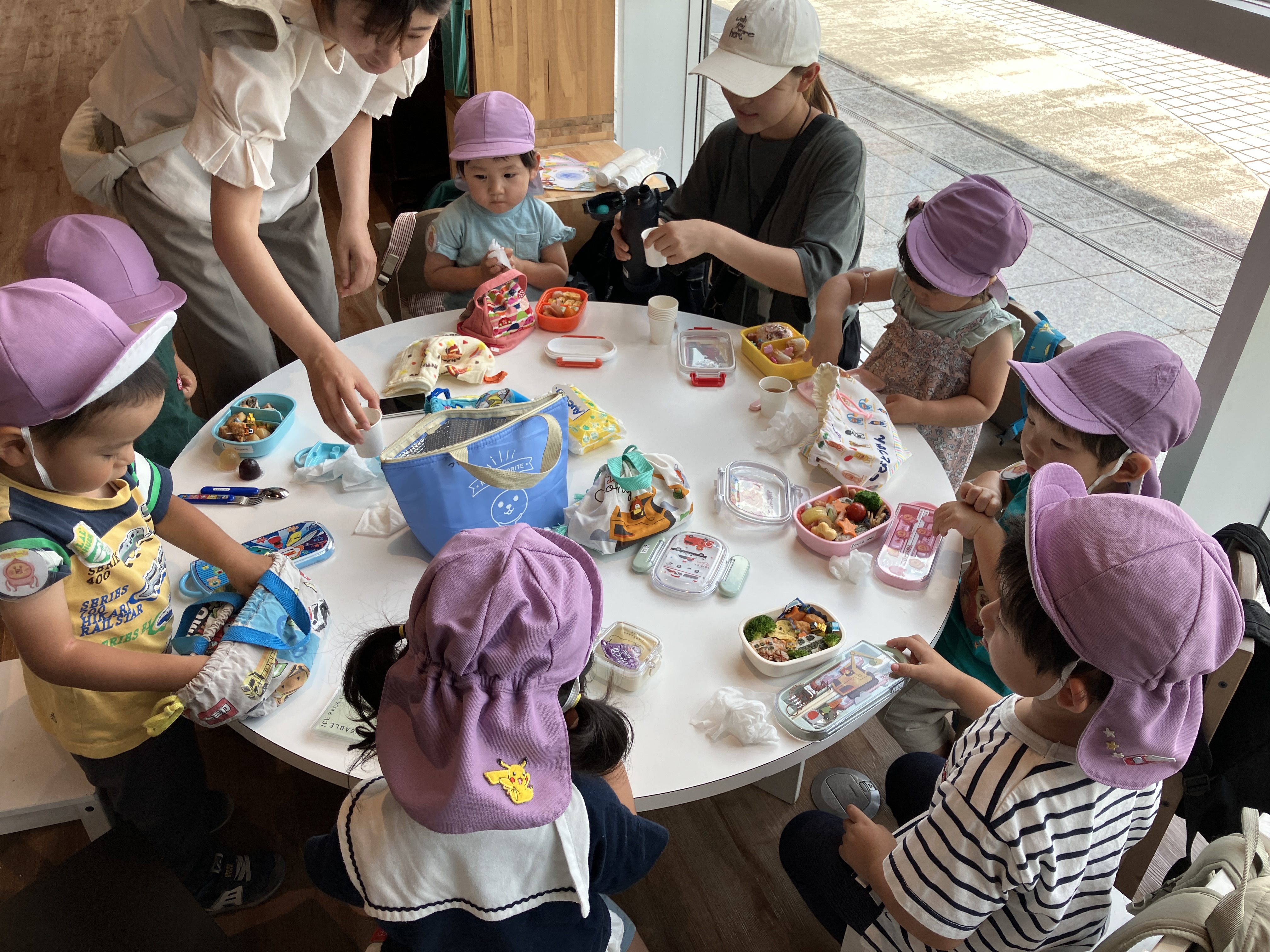 駅の隣のビルのフリースペースで、お家の方が作ってくださったお弁当をみんなで広げました🍱😋。「見て見て!」「美味しいね!」と、嬉しそうに食べる子どもたちの笑顔が印象的でした😆✨