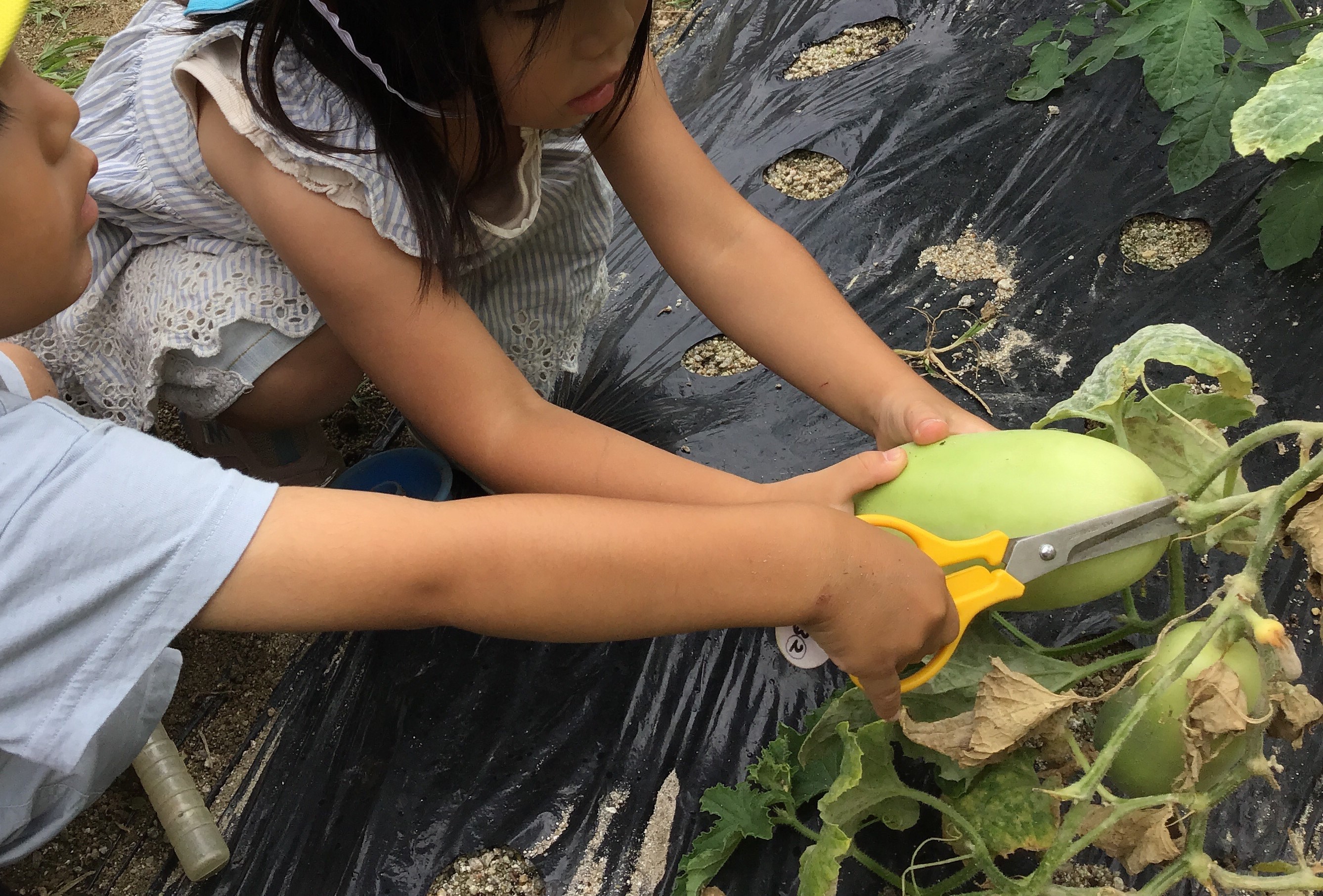 【食育】園の畑で夏野菜の収穫をしました