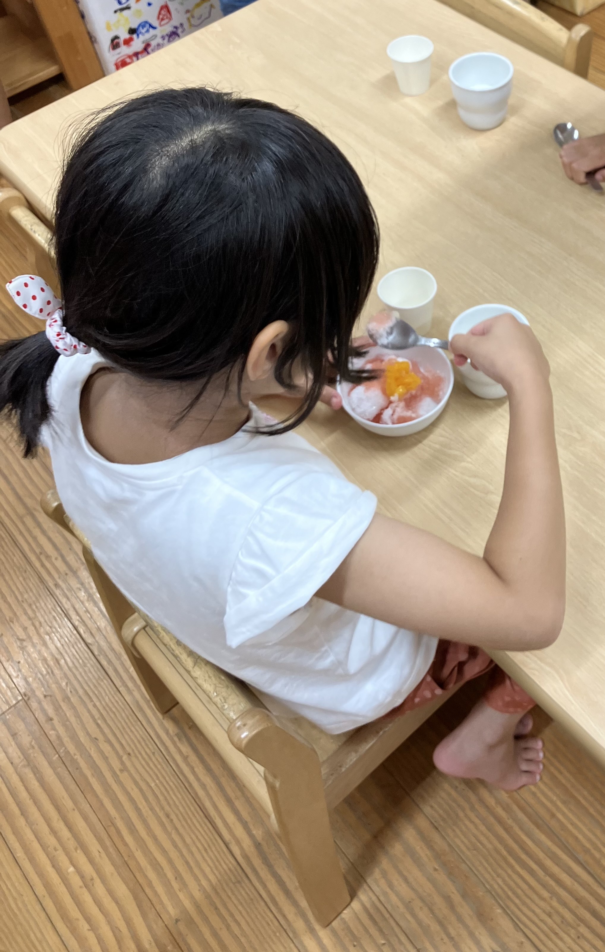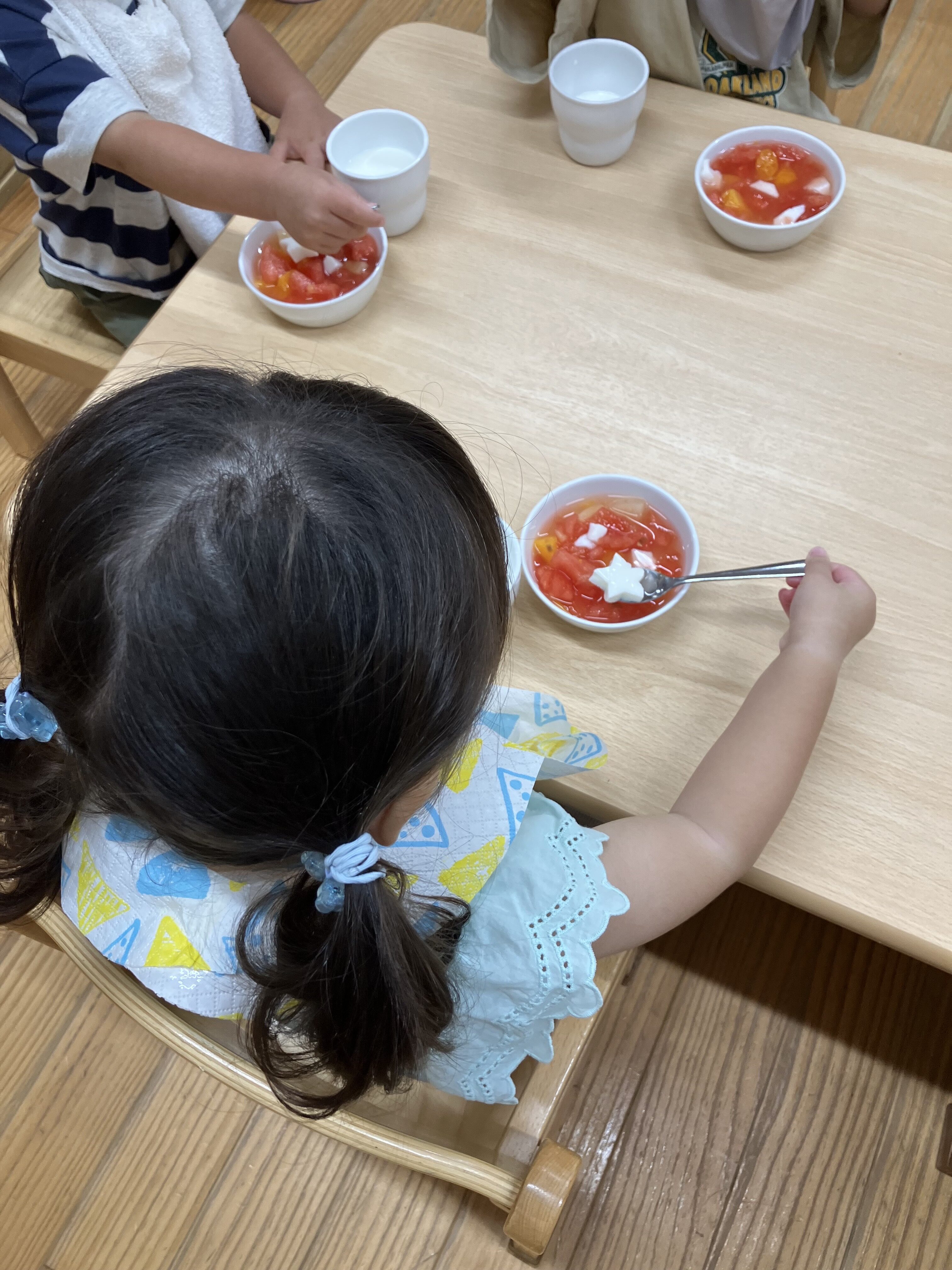 食べ慣れないのか、あまり進まない子も多かったようですが、夏らしいおやつタイムになりました。