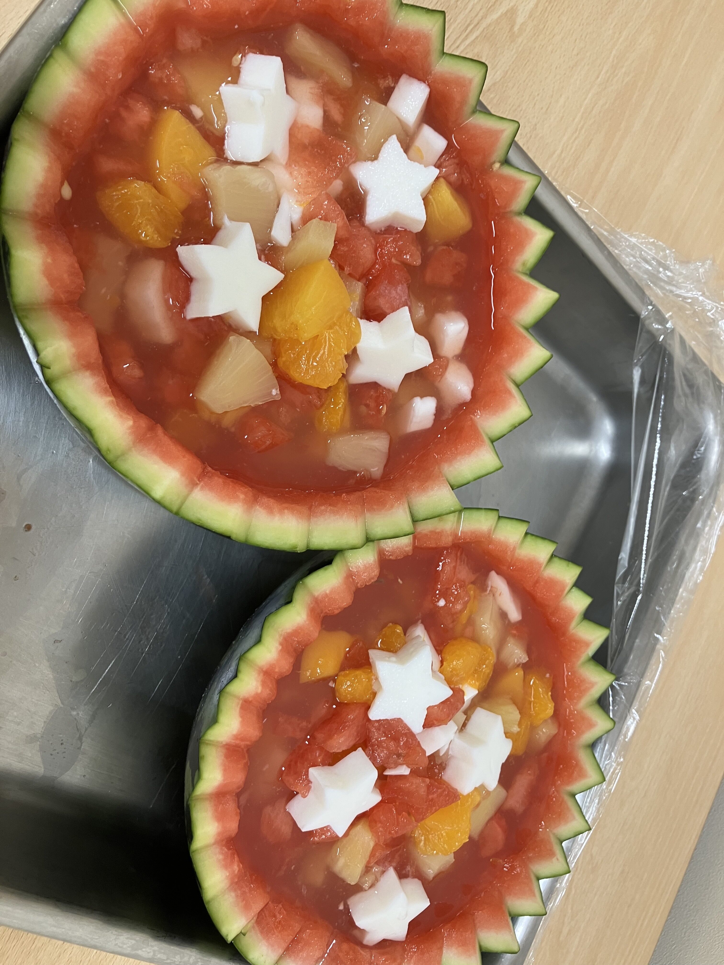 暑さが厳しい毎日ですが、夏らしい涼しいおやつを調理職員が用意してくれました。