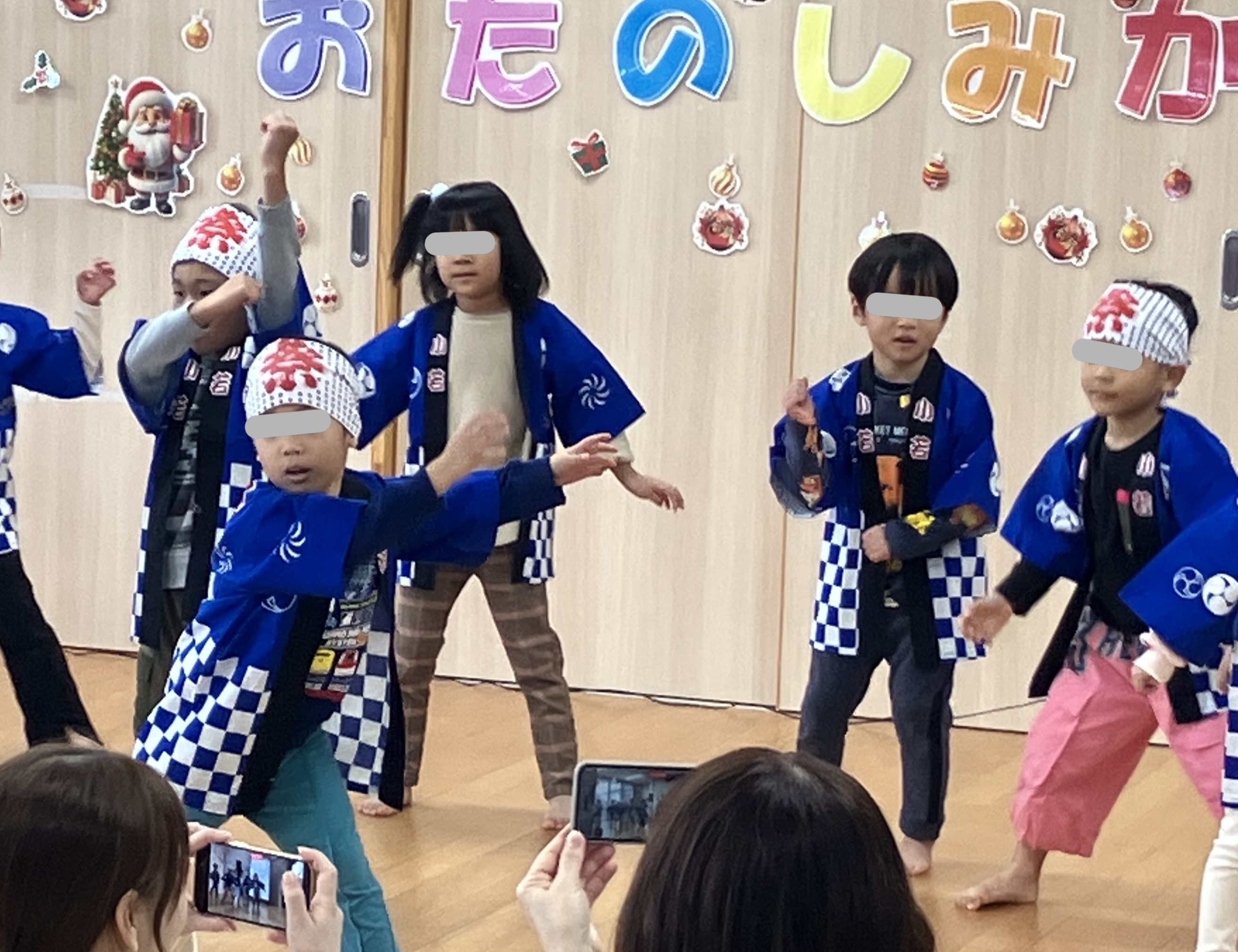 4歳児クラスでは、得意なことや頑張ったことを見てほしいということで、発表会が企画されました。その中で、うんどう会で年長クラスが取り組んだソーラン節を、自分たちもやりたい!と練習して披露する姿がありました。さいとみんなの家では異年齢混合保育を実施しているので、大きい子に憧れを持って、そこから学んでいくことが、普段の保育の中でも自然と行われています。