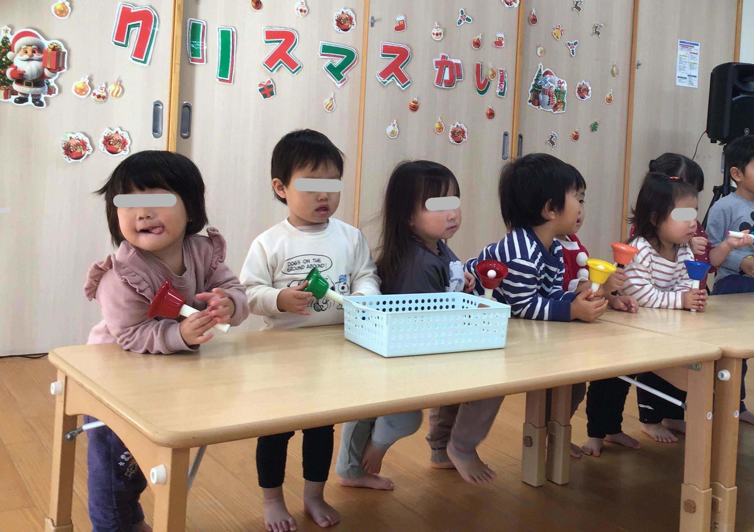 3歳以上児クラスの子どもたちは、お楽しみ会でも披露したハンドベルや楽器演奏をしてくれました。