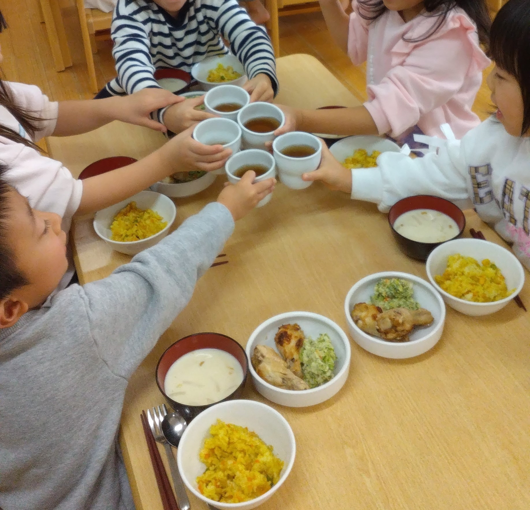 給食職員みんなで、子どもたちや職員の笑顔のために腕を振るってくれました。