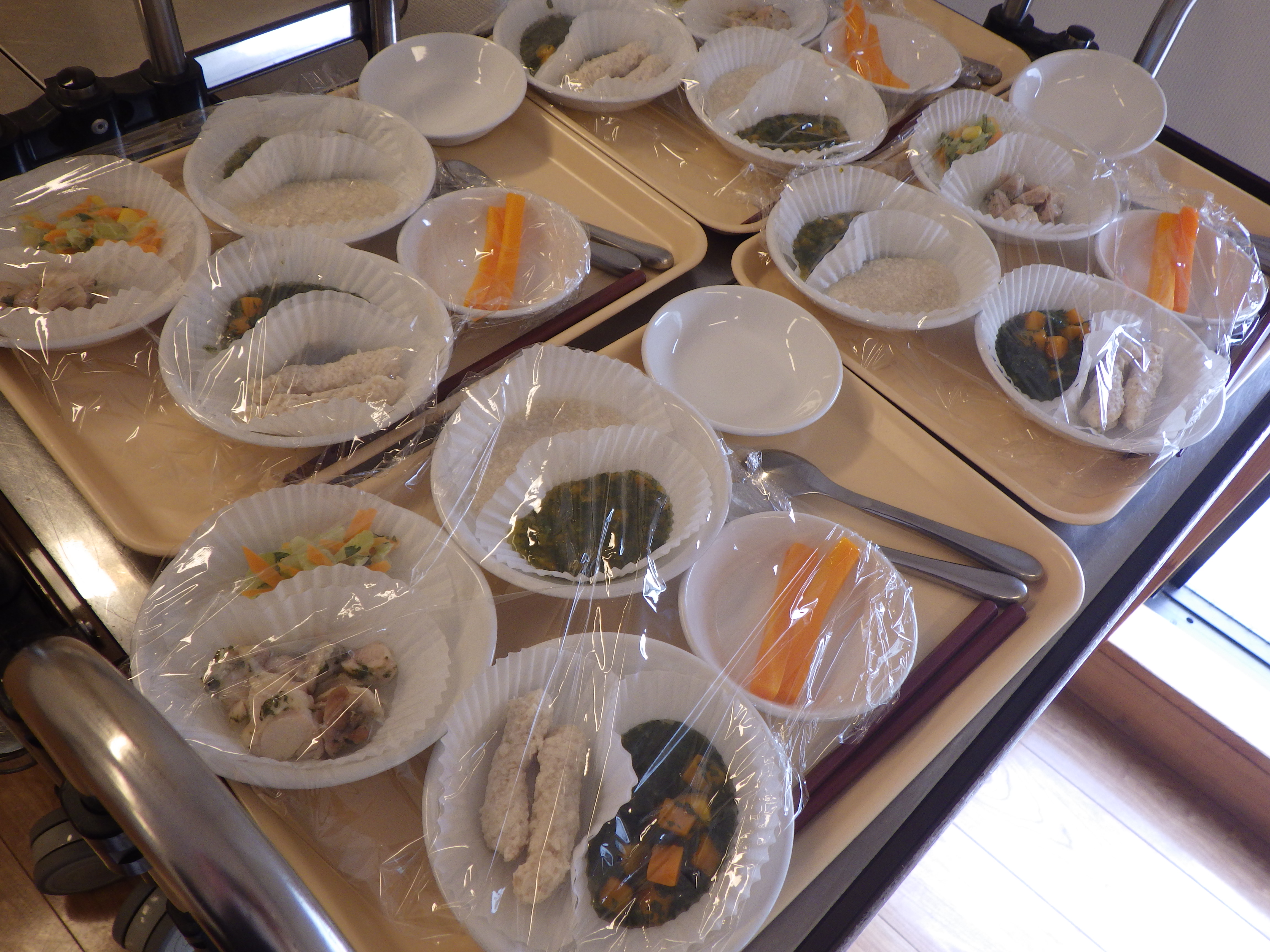 当日は、離乳食の固さごとの見本を用意し、実際に触れて・見て・味わっていただく体験を行いました。
