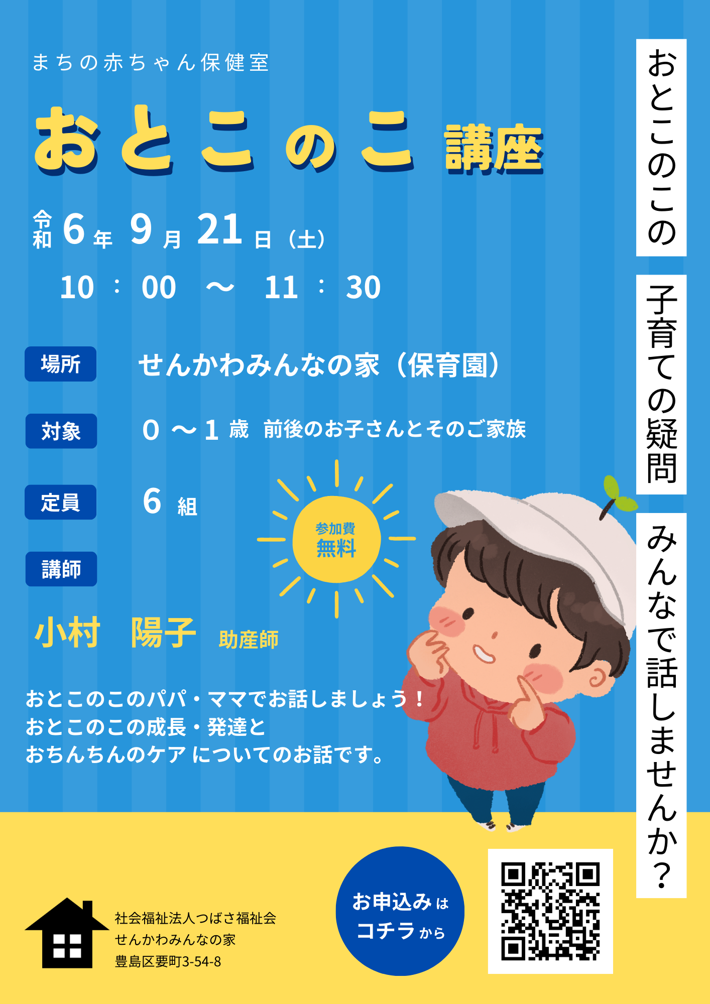 - 【地域子育て支援】まちの赤ちゃん保健室 9月 おとこのこ講座のご案内