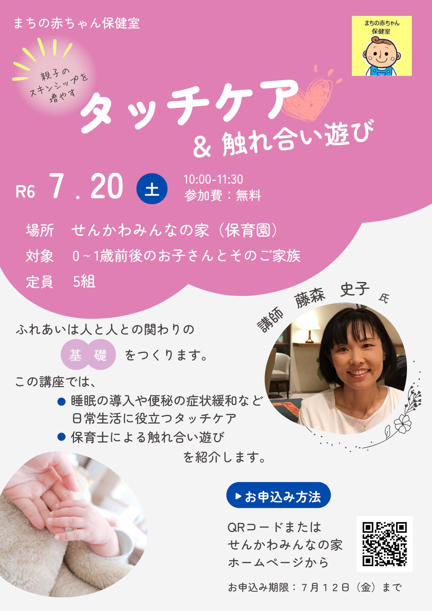- 【地域子育て支援】まちの赤ちゃん保健室 7月 タッチケアのご案内