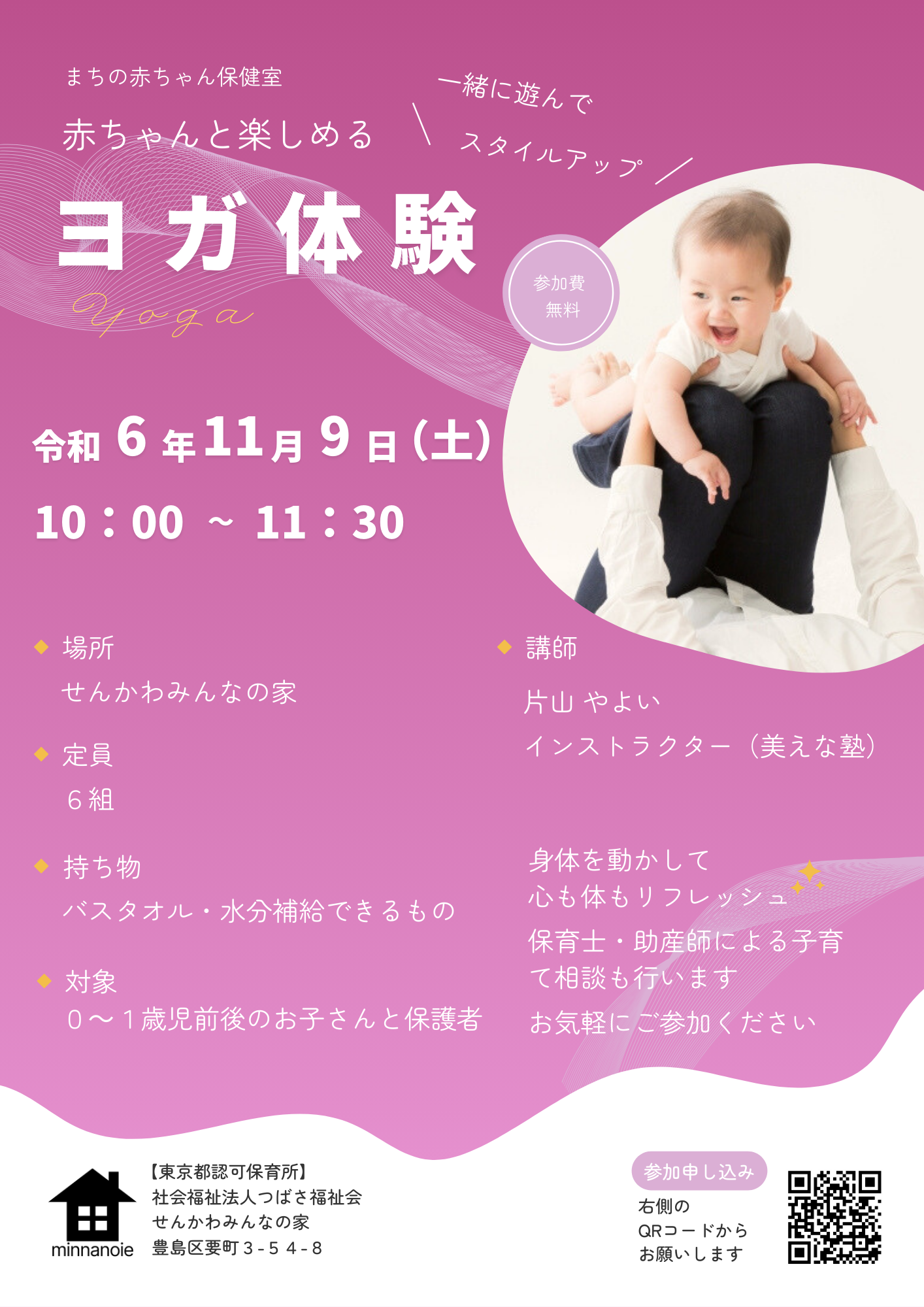 - 【地域子育て支援】まちの赤ちゃん保健室11月 赤ちゃんと一緒にできるヨガ体験のご案内