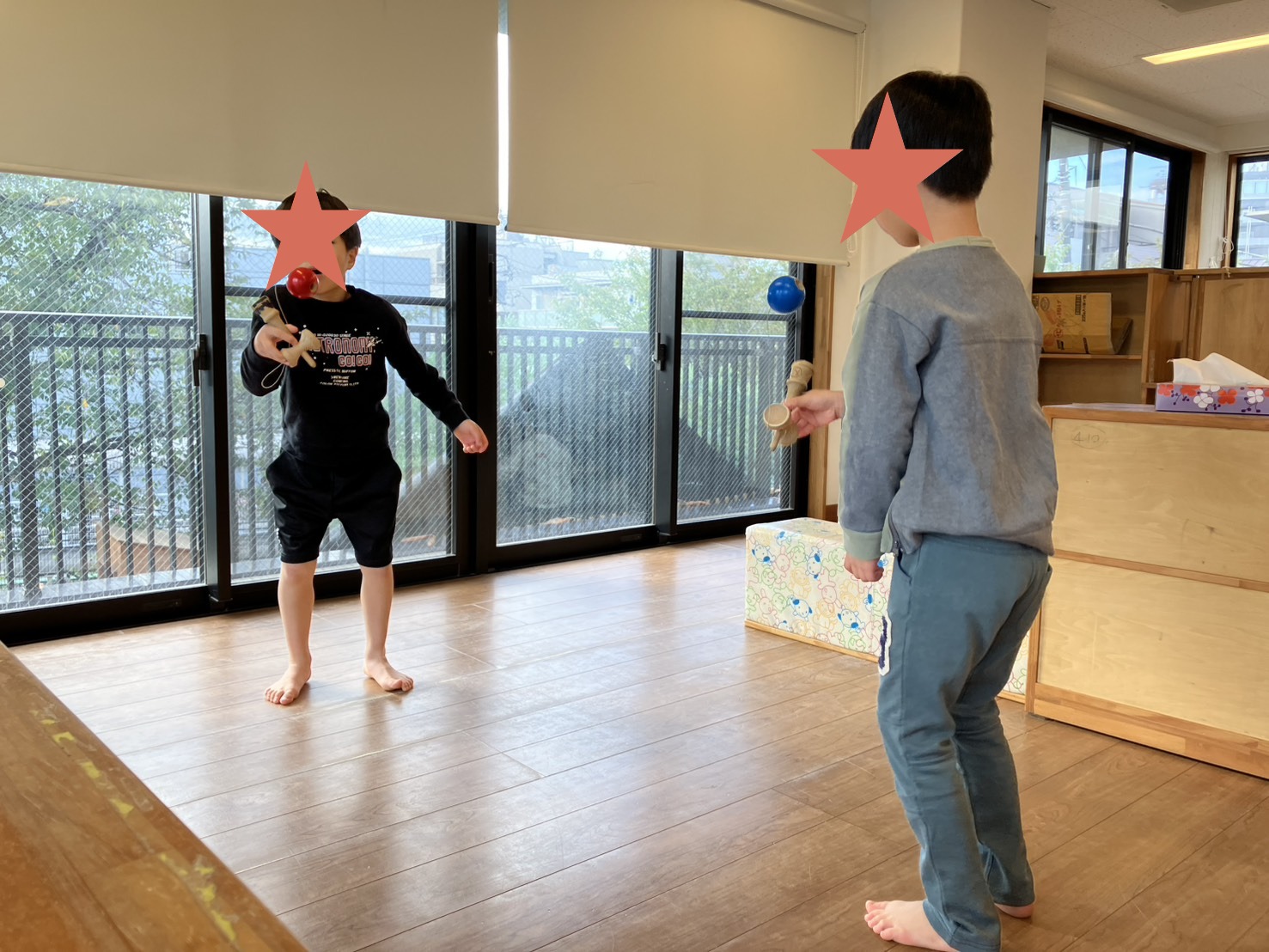 10月のお楽しみ会で、けん玉を披露したけん玉名人の子どもたちの姿を見かけました。