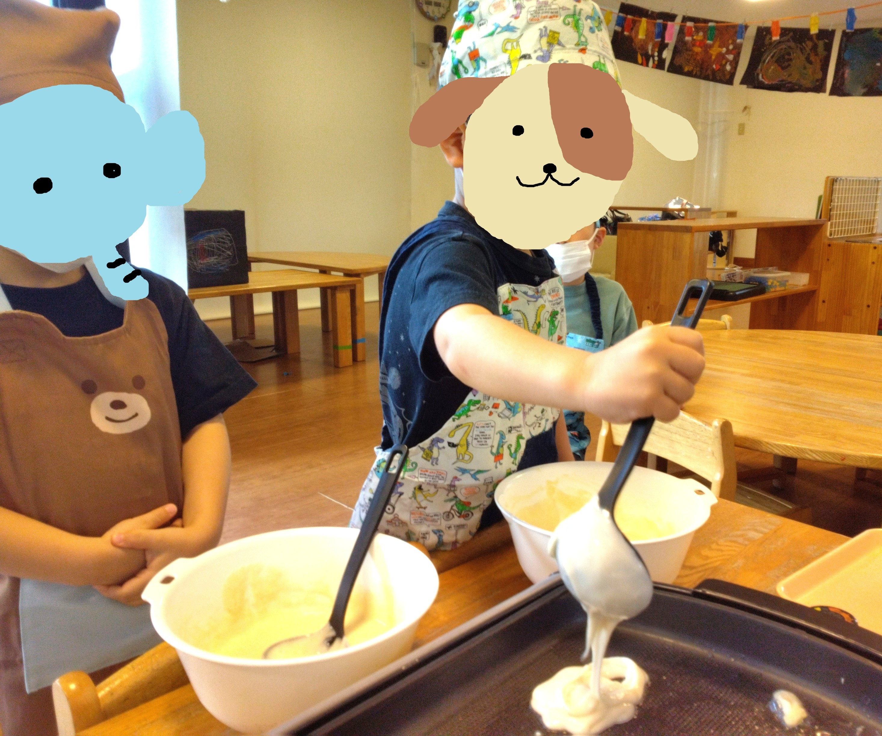 「ホットケーキが好き」の子どものつぶやきからクッキングでホットケーキを作りました。