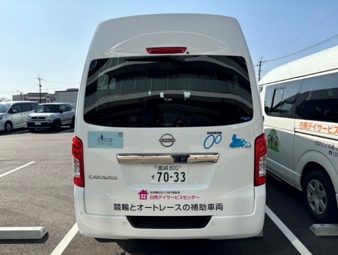 白馬デイサービスセンターは2024年JKA(競輪とオートレースの補助事業)による補助金を活用し、介護車両を購入させていただきました。